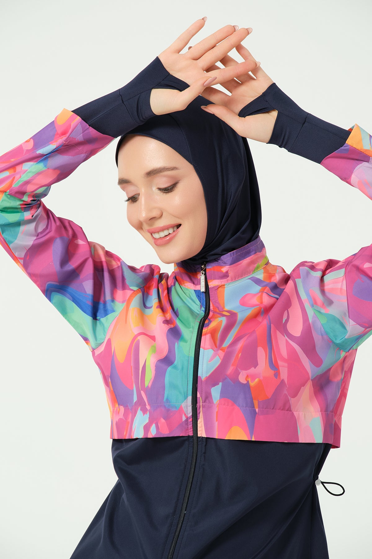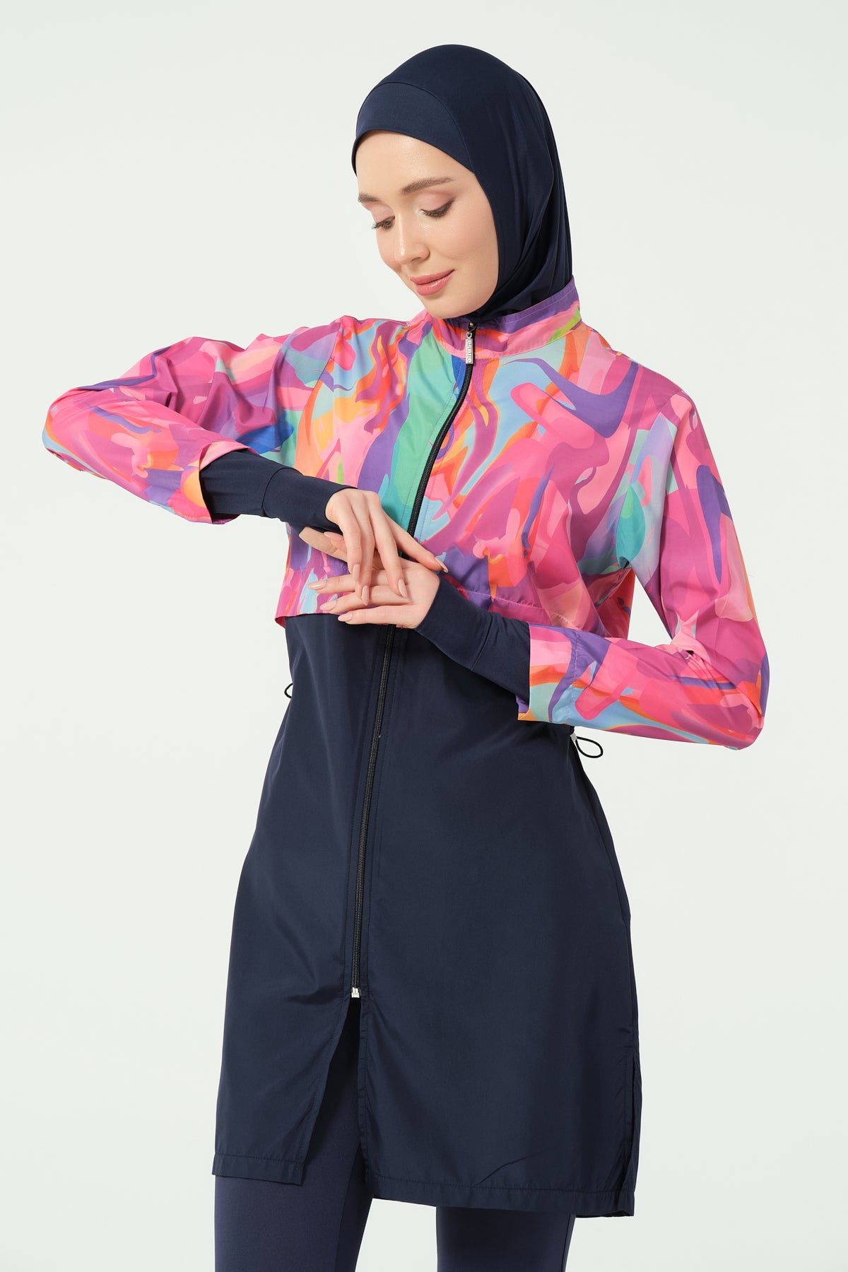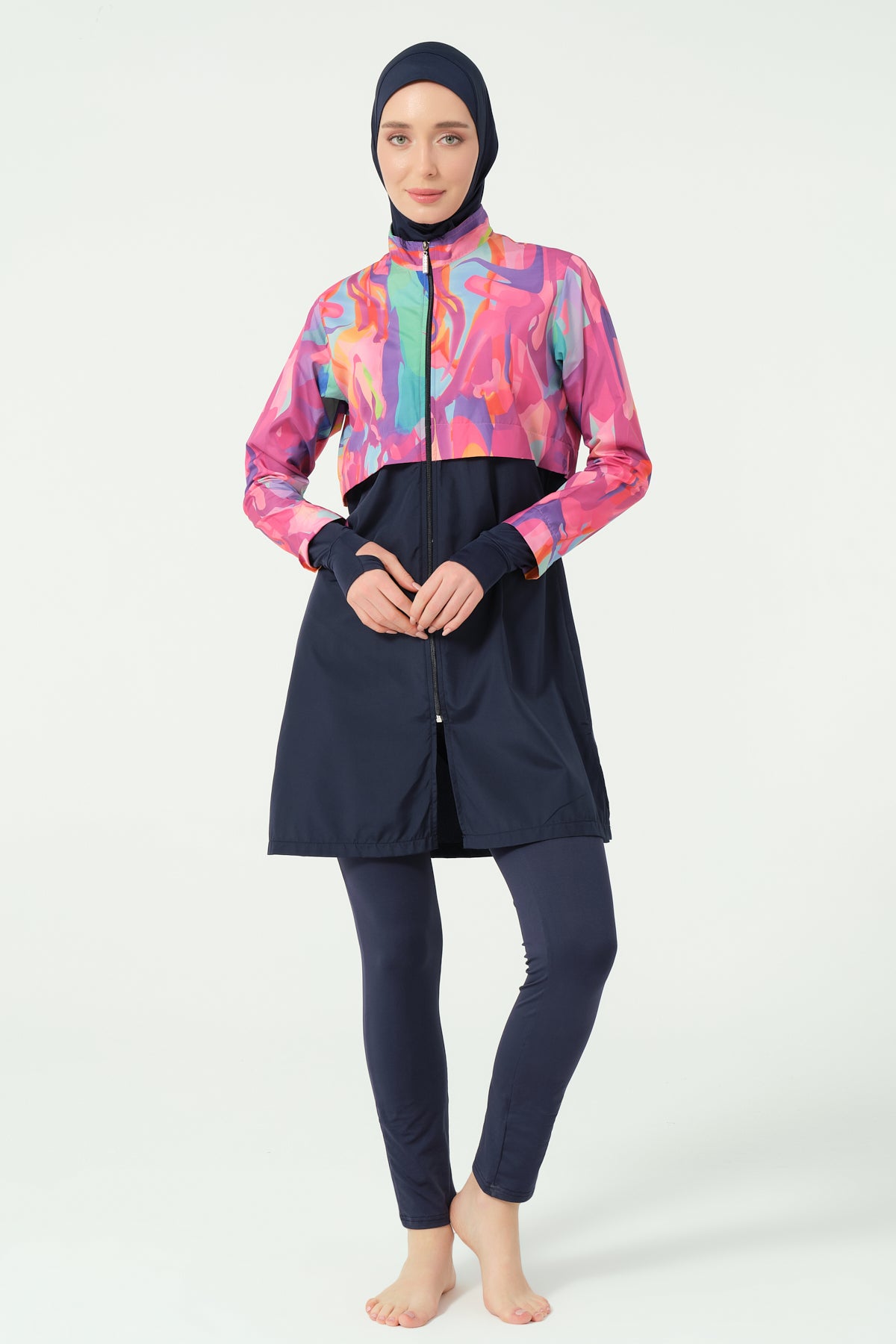 بوركيني تركي أنيق عملي جدًا للبنات في مرحلة السن المحير، تصميمه محتشم وخفيف يناسب السباحة والخروج على البحر أو البسين.
